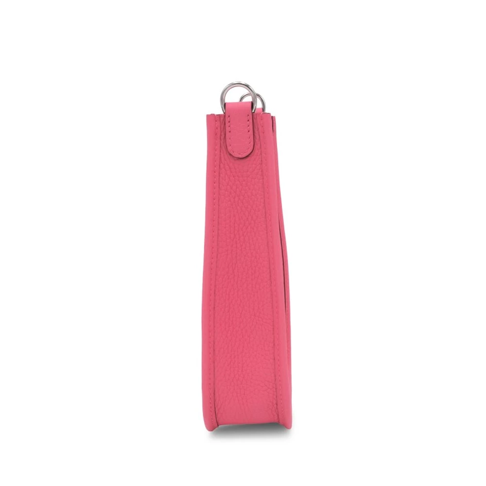 This Hermès Rose Azalée Clémence Mini Evelyne II TPM 16 with Palladium Hardware is a vibrant and feminine crossbody bag in a bold pink hue. The textured Clémence leather enhances its luxurious feel, while the palladium hardware maintains a sleek and modern balance. The perforated “H” logo and hands-free design make it a striking everyday option.