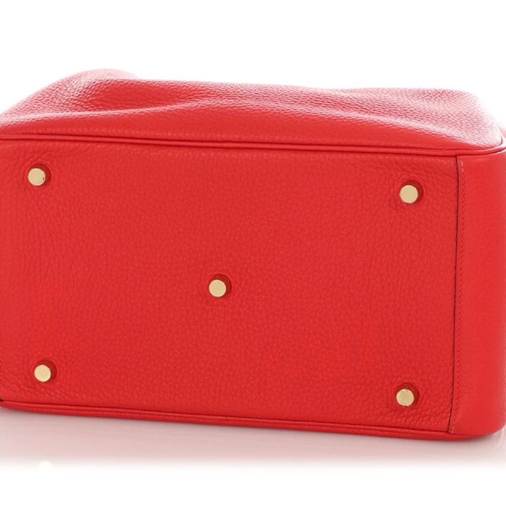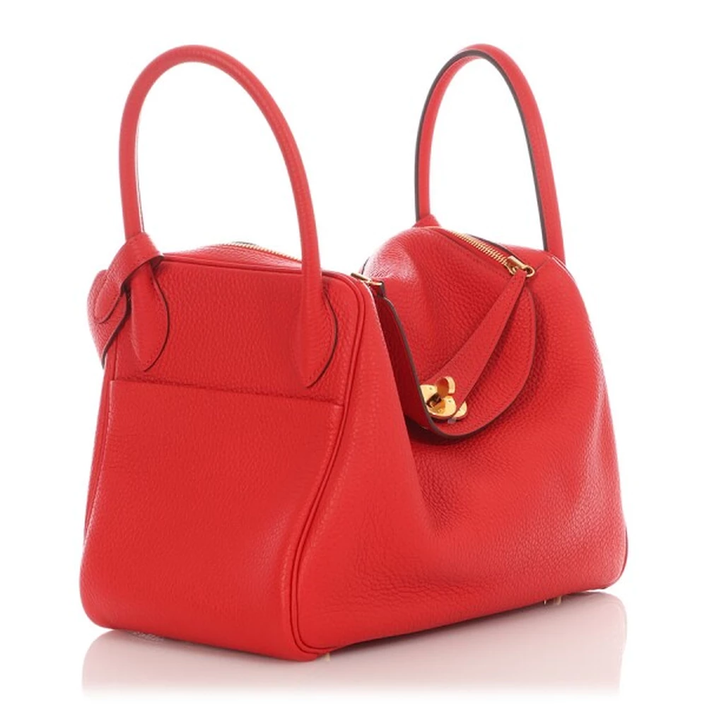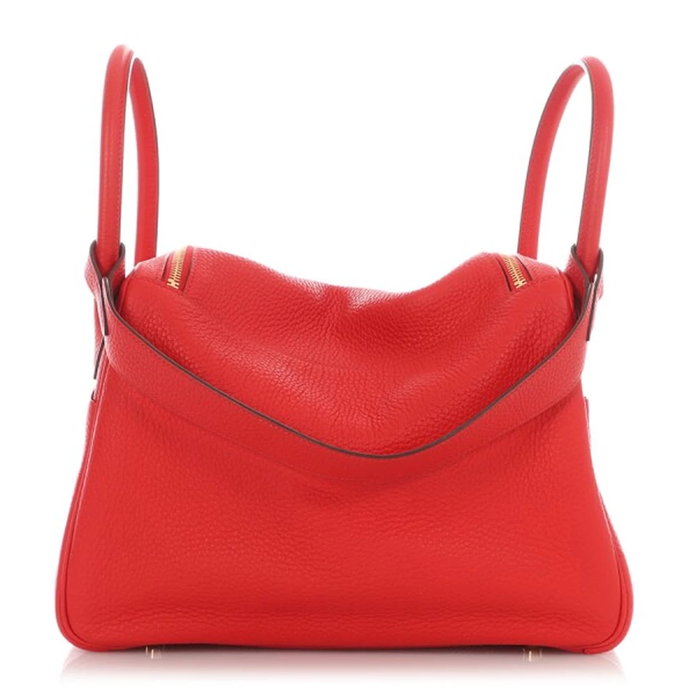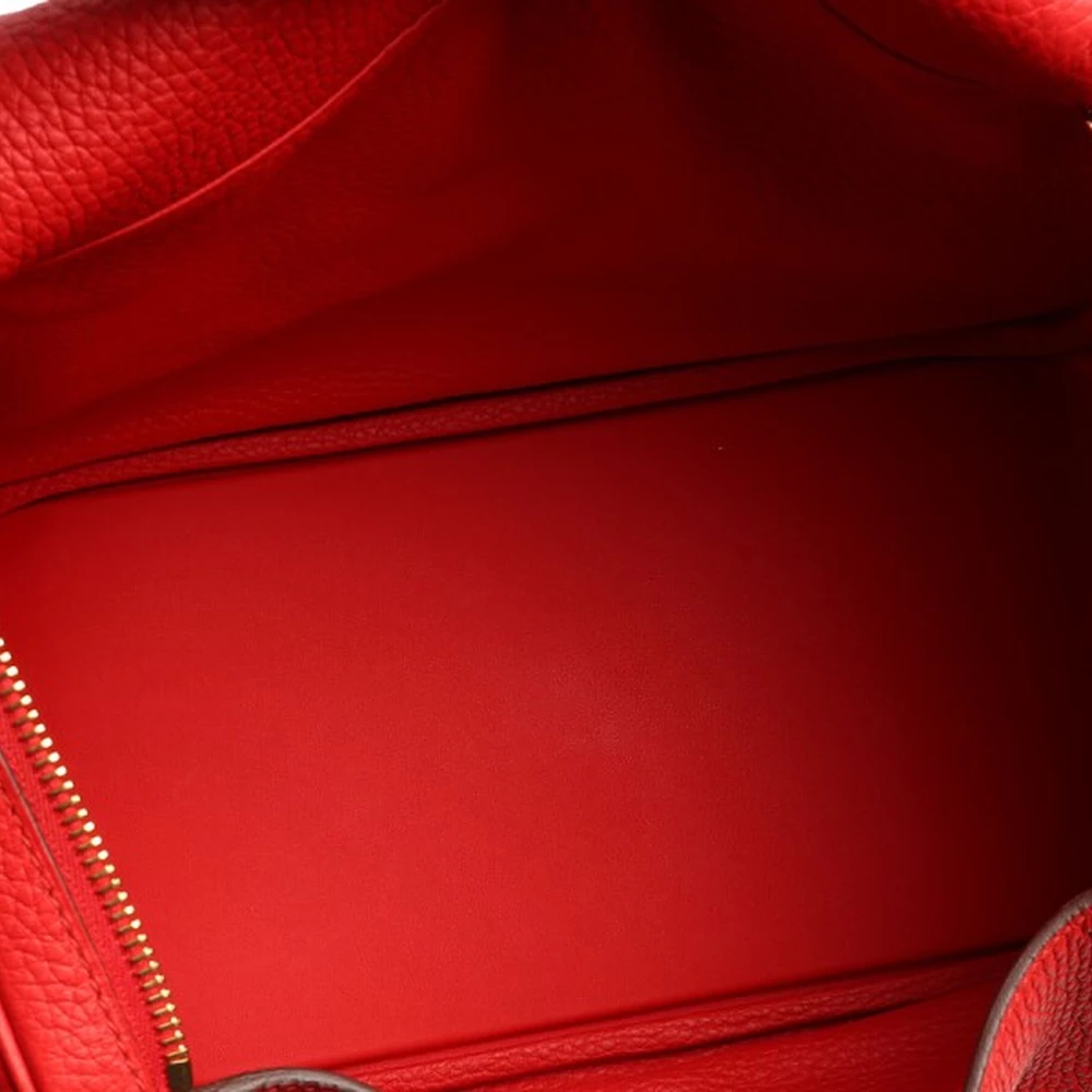 This Hermès Rouge de Coeur Clémence Lindy 30 with Gold Hardware is a bold and captivating handbag in a rich red hue. The grained Clémence leather enhances its texture, while the gold hardware adds a touch of warmth and refinement. Its spacious design and dual carrying options make it a statement piece with everyday functionality.