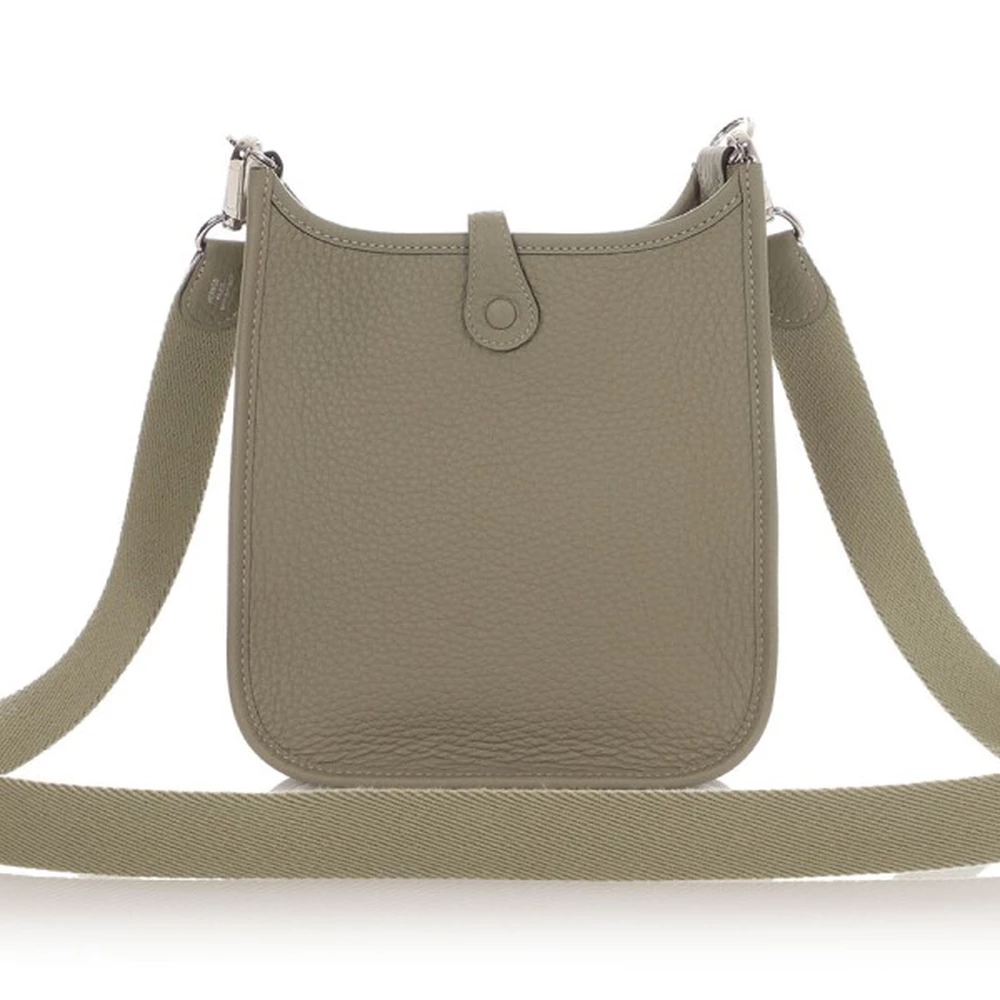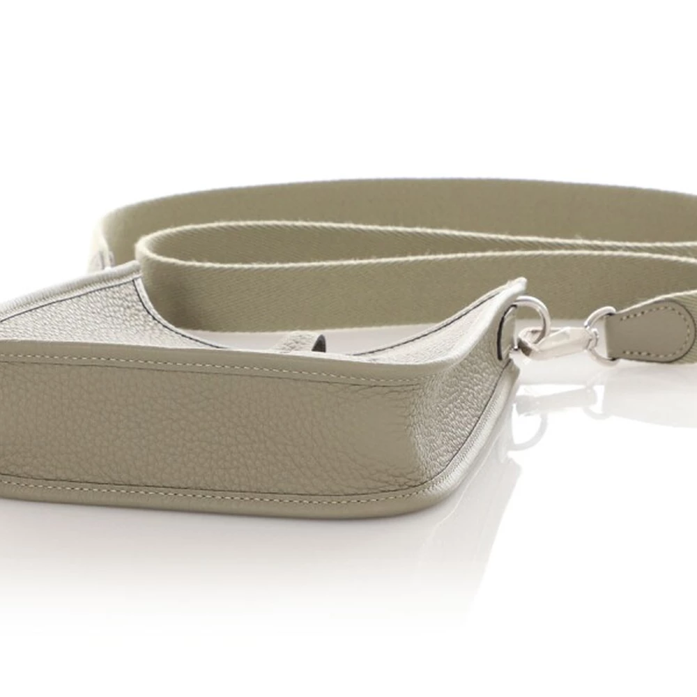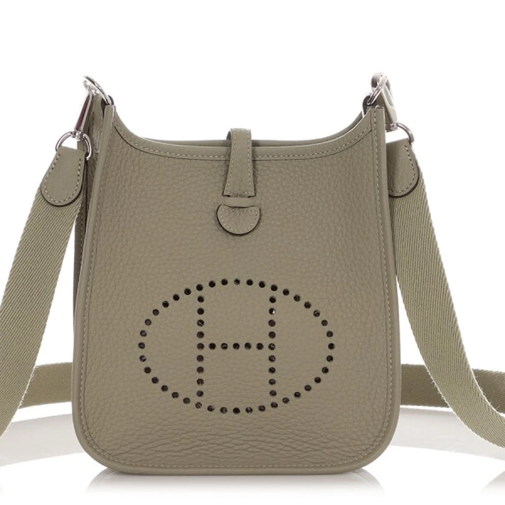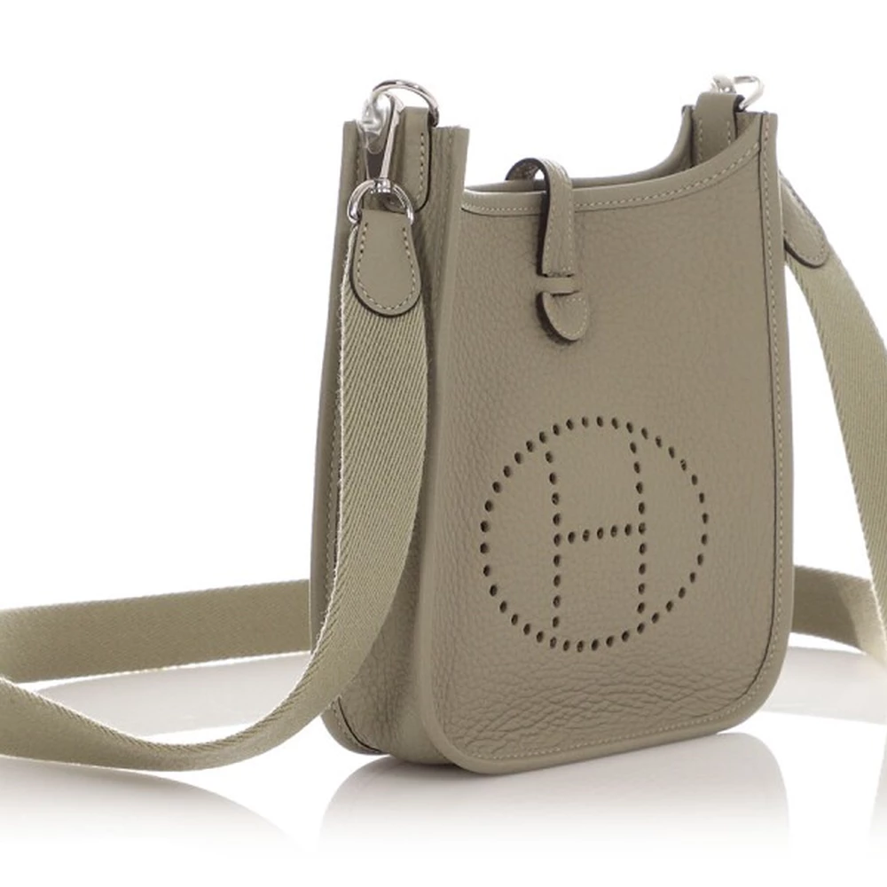 This Hermès Sage Green Clémence Evelyne TPM 16 with Palladium Hardware is a soft and sophisticated crossbody bag in a fresh muted green. The Clémence leather gives it a supple feel, while the palladium hardware maintains a cool-toned modern finish. The perforated “H” logo and casual-chic silhouette make it an excellent everyday option.