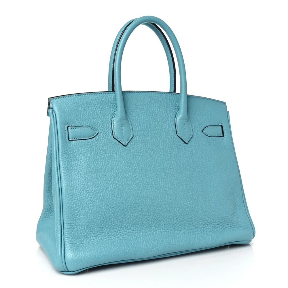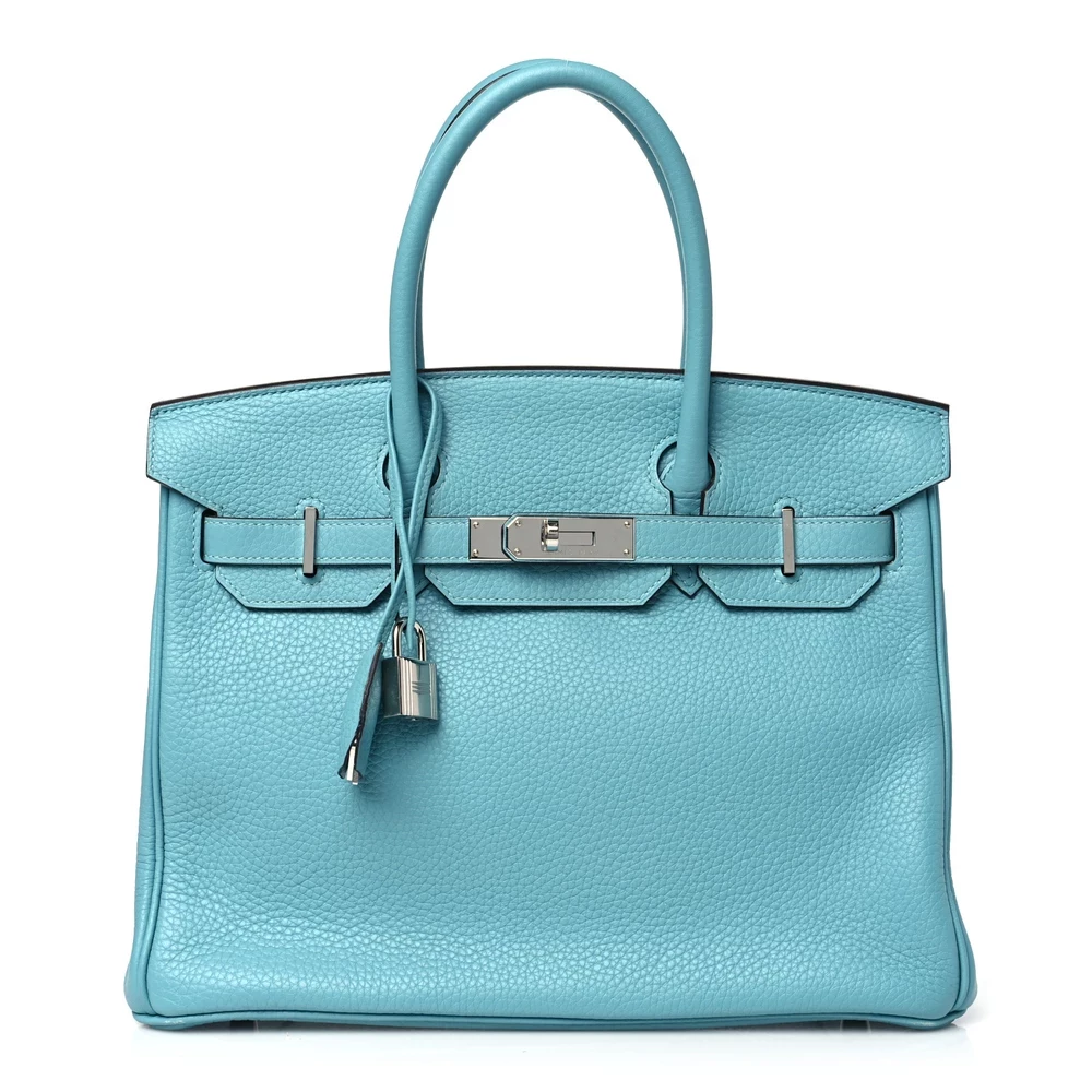 This Hermès Taurillon Clémence Birkin 30 in Bleu Atoll is a striking handbag in a bright, tropical blue shade. The Clémence leather provides a soft, relaxed structure while maintaining durability. With a 30 cm size, it is perfect for those who appreciate both functionality and luxury. Palladium hardware adds a sleek touch to the vibrant color. This Birkin is an eye-catching addition to any collection, ideal for those who love bold hues.