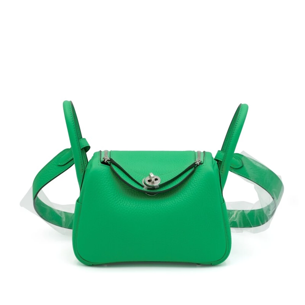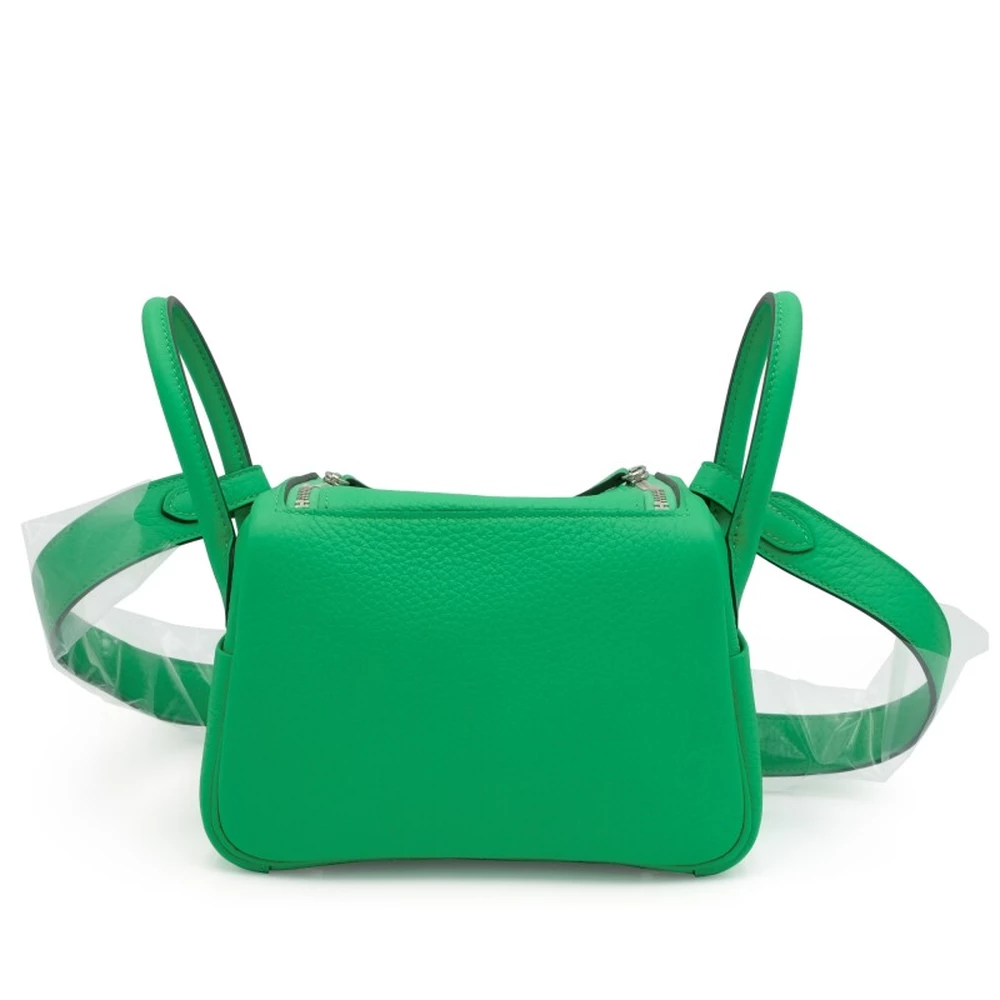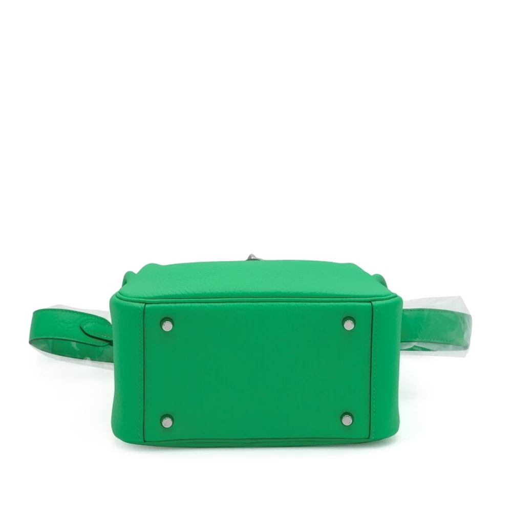 This Hermès Vert Comics Clémence Mini Lindy 20 with Palladium Hardware is a striking and contemporary handbag in a vibrant green hue. The Clémence leather gives it a supple and casual appeal, while the palladium hardware keeps the look modern. Its compact form is perfect for a bold statement.
