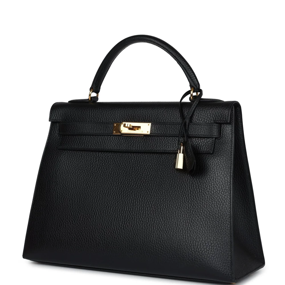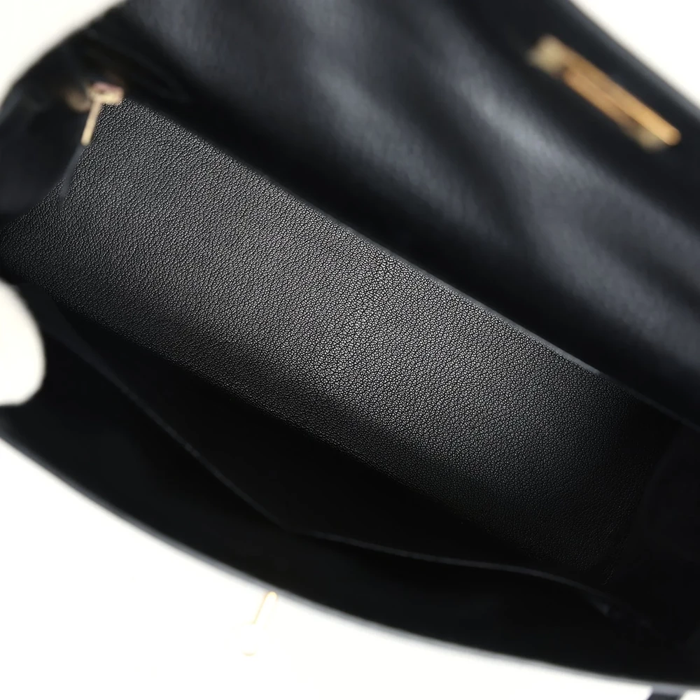 This Vintage Hermès Kelly Sellier 32 in Black is a timeless and elegant choice. Crafted from durable Ardennes leather, it features a structured silhouette. The Gold hardware adds a touch of opulence. Its deep black hue is perfect for adding sophistication to any outfit. The spacious interior offers practicality and style. A must-have for collectors. This bag is a true Hermès treasure.